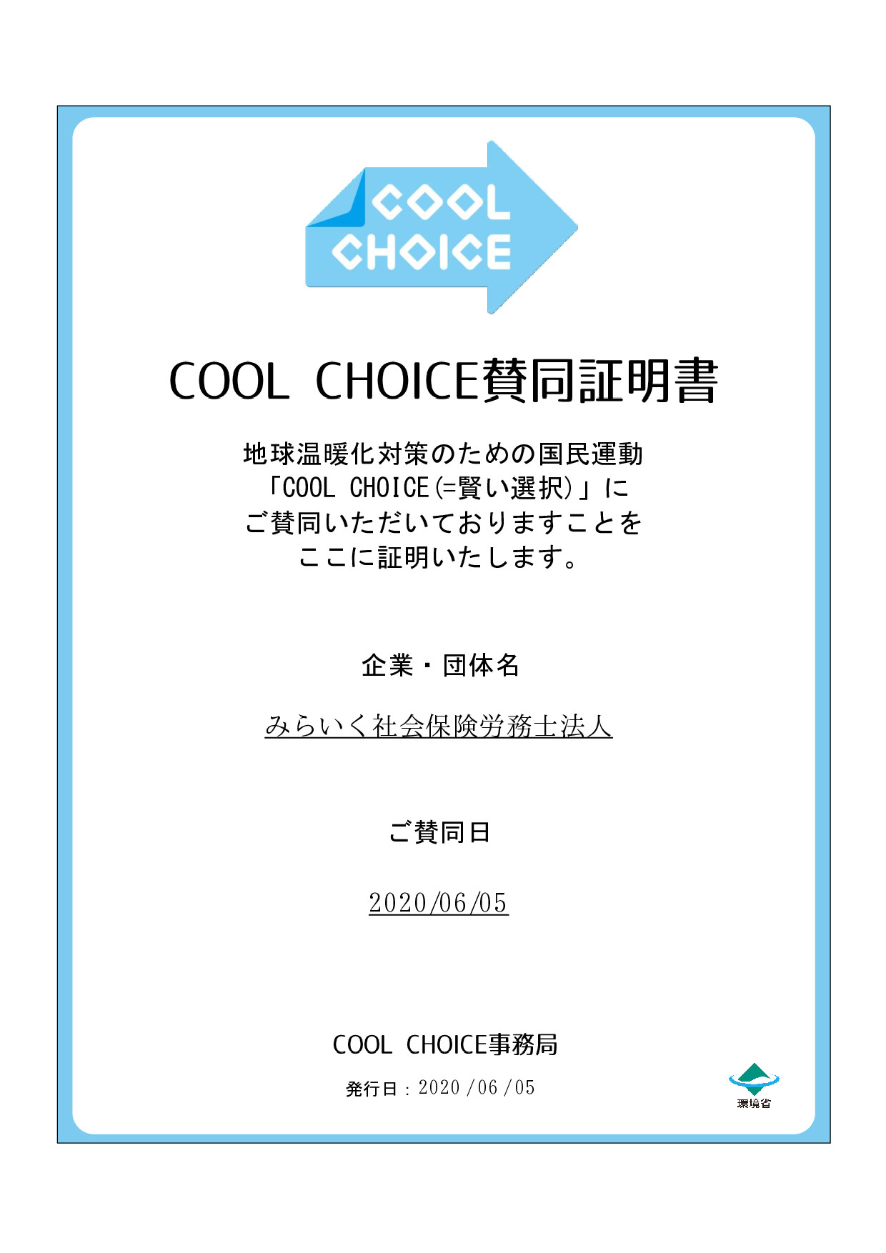身近な生活のなかで、未来のために、今選択できるアクションを選び、COOL CHOICEに賛同いたしました。