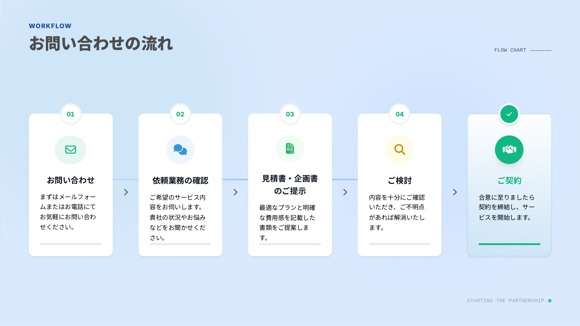 顧問契約をご検討されている方へ、当事務所のご契約の流れをご紹介いたします。